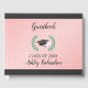 Moderne schwarze Mütze, türkisfarbener Lorbeerkranz und Diplom auf rosa Untergrund