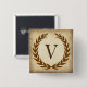 Laurel Wreath Aged Papyrus Monogram Initial V Button