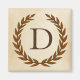 Ein zarter Lorbeerkranz ist auf einem Pergamentpapier-Hintergrund im klassisch römischen Stil geschichtet. Dieses Design ist personalisiert mit dem Monogramm "D" in einem reichen sienna Ton.