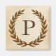 Ein zarter Lorbeerkranz ist auf einem Pergamentpapier-Hintergrund im klassisch römischen Stil geschichtet. Dieses Design ist personalisiert mit dem Monogramm "P" in einem reichen sienna Ton.