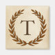 Ein zarter Lorbeerkranz ist auf einem Pergamentpapier-Hintergrund im klassisch römischen Stil geschichtet. Dieses Design ist personalisiert mit dem Monogramm "T" in einem reichen sienna Ton.