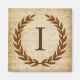 Ein zarter Lorbeerkranz ist auf einem Vintagen Notenhintergrund im klassisch römischen Stil geschichtet. Dieses Design ist personalisiert mit dem Monogramm "I" in einem reichen sienna Ton.