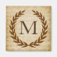 Ein zarter Lorbeerkranz ist auf einem Vintagen Notenhintergrund im klassisch römischen Stil geschichtet. Dieses Design ist personalisiert mit dem Monogramm "M" in einem reichen sienna Ton.