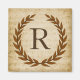 Ein zarter Lorbeerkranz ist auf einem Vintagen Notenhintergrund im klassisch römischen Stil geschichtet. Dieses Design ist personalisiert mit dem Monogramm "R" in einem reichen sienna Ton.