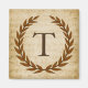 Ein zarter Lorbeerkranz ist auf einem Vintagen Notenhintergrund im klassisch römischen Stil geschichtet. Dieses Design ist personalisiert mit dem Monogramm "T" in einem reichen sienna Ton.