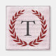 Ein zarter Lorbeerkranz ist auf einem weichen, rosa Vintagen Notenhintergrund im klassischen romantischen Stil verlegt. Dieses Design ist mit dem Monogramm "T" in einem kohlegrauen Ton personalisiert.