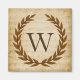 Ein zarter Lorbeerkranz ist auf einem Vintagen Notenhintergrund im klassisch römischen Stil geschichtet. Dieses Design ist personalisiert mit dem Monogramm "W" in einem reichen sienna Ton.
