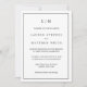 Einfache Einladung zur Hochzeit mit modernem und elegantem Design, oben mit zwei Buchstaben Monogramm und in einem schmalen Rahmen. Alle Designelemente sind schwarz über einem weißen Hintergrund und können in eine beliebige Farbe im Entwurfstool umgewandelt werden. Die Rückseite hat alle Ihre Hochzeitsdetails, sodass dieses eine preisgünstige Hochzeitssuite. Ein elegantes und stilvolles Schwarz-Weiß-Design, das sich perfekt für ein minimalistisches Paar eignet.