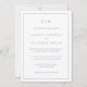 Einfache Einladung zum Hochzeitsfeiern mit modernem und elegantem Design, oben mit zwei Buchstaben-Monogramm und in einem dünnen Rahmen. Alle Designelemente sind staubblau über einem weißen Hintergrund und können in eine beliebige Farbe des Designbearbeitungstools umgewandelt werden. Die Rückseite hat alle Ihre Hochzeitsdetails, sodass die Notwendigkeit einer separaten Kapselkarte, sodass dieses eine preisgünstige Hochzeitssuite. Ein elegantes und stilvolles Design, das sich ideal für ein minimalistisches Paar eignet.
