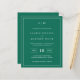 Einfache, preiswerte Hochzeitseinladung mit modernem und elegantem Design mit zwei Buchstaben Monogramm oben, einem kühnen Datumslayout und Ihren Details, umgeben von einer dünnen Grenze. Alle Designelemente sind in Weiß über einem Juwel Ton Smaragdgrün Hintergrund und können im Design Editing Tool geändert werden. Ein elegantes und stilvolles Design, das sich ideal für ein minimalistisches Paar eignet.