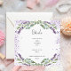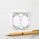 Weiß mit violettem, lavenfarbenem Imitat verziert, der Glitzer staub. Personalisieren Sie Ihre Hochzeitsdetails und fügen Sie diese hinzu. Schwarze Buchstaben.