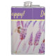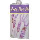 Lavendel Blume Bee Happy Lila Hip Flask mit einem vollständig anpassbaren Text. Entworfen aus meinem ursprünglichen Garten Aquarellmalerei.
