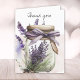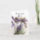 Dieses Design zeigt eine Aquarellillustrierung der Lavendel-Blume in einem Glasgefäß. Im Text steht: "Danke." Im Inneren der Karte ist leer.