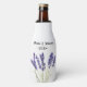 Lavendel, violette Blumen, Aquarellbierflasche cooler. Blumendesign im Sommer. Ideal für Gastgeschenke Hochzeiten. Personalisieren Sie es mit Ihren Namen und Datum.