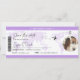 Lavender Monogramm Boarding passieren Hochzeitskarte, ein Portrait des verlobten Ehepaares, ein Flugzeug mit einem Loop-Trail, und eine anpassbare Save the Date Vorlage. Bitte denken Sie daran, den Text auf der Rückseite des Monogramms zu bearbeiten. Hochzeit