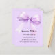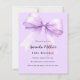 Ein weicher Lavendel, lila Hintergrund, mit einem großen Bogen verziert. Personalisieren und fügen Sie einen Namen und Party-Details hinzu. 1 Blatt = 1 Einladung mit Druckkante bis Kante.