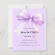 Ein weicher Lavendel, lila Hintergrund, mit einem großen Bogen verziert. Personalisieren und fügen Sie einen Namen und Party-Details hinzu. 1 Blatt = 1 Einladung mit Druckkante bis Kante.