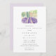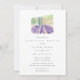 Dieses moderne Probe Dinner Invitation verfügt über eine Aquarellmalerei auf Lavendelfeldern, die von Frankreich mit schicken Typografie inspiriert wird