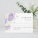 Diese elegante RSVP-Karte zeigt zarte Lavendel- und Fliederblumen, kombiniert mit filigranen weißen Hortensien, und schafft so ein romantisches und raffiniertes Aussehen für Ihre Hochzeitspapeterie.