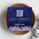 Ein marineblauer blauer Hintergrund, weißer Text. Die blaue Farbe ist ungleichmäßig. Dekoriert mit Aquarelllavender-Flora QR-Code: Fügen Sie Ihren Link/URL zu Ihrer Hochzeitswebsite für UAWG. Personalisieren Sie Ihre Namen und fügen Sie sie hinzu.