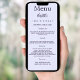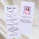Geburtstagsmenü Karte. Personalisieren und fügen Sie einen Namen, Alter, Datum und das Menü. Ein Lavendel mit violettem Hintergrund. Lila Buchstaben. Zurück: Fügen Sie ein Foto des Geburtstagsmädchens hinzu, lustige Fakten.