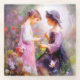 Zwei Mädchen in einem Blumengarten, bewundern eine Lavendel-Blume. Ideal für Kinderzimmer.