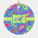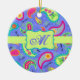 Fügen Sie diesem Ornament eine Farbspritze hinzu, die mit einem Pisley-Design und personalisiert mit Ihrem Monogramm, Ihren Initialen oder Namen versehen ist. Die kühnen Farben dieses angesagten Paisley-Designs sind mit einem Zwischenholz-Lavendel-Hintergrund, einem Kalkgrün und einem Emblem für die Personalisierung gestaltet. Helle, frische, moderne Paisleys bilden ein wunderschönes künstlerisches Design, das inspirierende Worte von Liebe, Hoffnung, Glauben, Inspirier, Tschechisch, Be Happy, Dream, und Live im Hintergrund zwischen den Paisleys beinhaltet. Diese von Phyllis Dobbs entworfene Kollektion Mod Paisley verwendet die Farbtöne aquamarin, türkisblau, Limettengrün, Wein, Gelb, Fuchsien und Orange, um das traditionelle und beliebte Paisleymotiv zu genießen. Das Paisleymotiv ist zeitlos ansprechend, aber diese originelle Kunst ist zeitgenössisch und zugleich modern. Vollständig anpassbar für Personalisierung mit eigenen Worten, um Ihre eigene Nachricht hinzuzufügen.