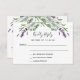 Ein weißer Hintergrund, schwarzer Text. Mit Lavendelblumen und Eukalyptus-Pflanzen dekoriert. Personalisieren Sie die Antwort und fügen Sie sie nach Datum hinzu. Zurück: Fügen Sie Ihre Hochzeitswebsite url zum QR-Code und einen Text hinzu.