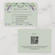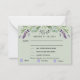 Ein schlauer grüner Hintergrund, schwarzer Text. Mit Lavendelblumen und Eukalyptus-Pflanzen dekoriert. Personalisieren und fügen Sie die Antwort nach Datum und Menüauswahl. Zurück: Grün Hintergrund. Fügen Sie Ihre Hochzeitswebsite url zum QR-Code für weitere Details hinzu