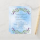 Weiß und blau, mit lavendelfarbenen Blume und Eukalyptusgrün dekoriert. Personalisieren und Ihre Namen und Details. 1 Blatt = 1 Einladung mit Druckkante bis Kante.