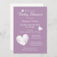 Eleganter Lavender lila und weiße Duschkabine für Mädchen. Eigenes Party lädt mit kleinen weißen Herzen ein. Neutrales Design geeignet für Junge und Mädchen. Anpassen der Ausschnitt-Form. Benutzerdefinierte Hintergrundfarbe: Aqua, gelb, blau oder rosa. Schöne Schrift-Typografie mit Vintagen Lieben-Symbolen. Anpassbare Vorlage mit UAWG und Registrierungszeile. Niedliche Babyduschkarten für schwangere Frauen / Mama zu sein.
