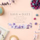 Lavender Lila Blätter Hochzeitsakrylus Save the Date Siehe dazu passende Kollektion in Niche und Nest Store