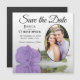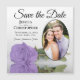 Diese magnetischen speichern die Dattelkarten Bereich wunderbare Weise, um Ihre Freunde und Familie wissen über Ihre bevorstehende Hochzeit lassen. Sie zeichnen sich durch ein romantisches und zugleich elegantes Design aus. Ein Single mit einer lila Rose aus Lavendel, die in einem Wasserbecken mit Wellen und Wellen und in einem ovalen Rahmen auf einem klassischen, weißen Hintergrund Ihr Foto reflektiert. Die Beschriftung liest sich Save the Date mit Leerzeichen für Ihren Namen, das Datum und den Ort.