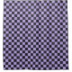 Ein lebhaftes Schachbrettmuster mit abwechselnden schwarzen und lavendelfarbenen Quadraten erzeugt ein kühnes, symmetrisches Gitter. Das Design ist ausgewogen und visuell auffallend.