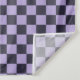 Ein lebhaftes Schachbrettmuster mit abwechselnden schwarzen und lavendelfarbenen Quadraten erzeugt ein kühnes, symmetrisches Gitter. Das Design ist ausgewogen und visuell auffallend.