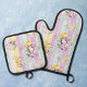 Lavendel mit geblümten gestreiften Ofen Mitt und Topfhalter.