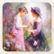 Zwei Mädchen in einem Blumengarten, bewundern eine Lavendel-Blume. Ideal für Kinderzimmer.