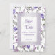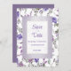 Delikate Aquarellfloralen in sanften Lavendeln, Rosa und lila Farbtönen blühen neben frischem grünem Blattwerk in dieser romantischen Hochzeit Retten Sie das Datum Einladung. Der handbemalte Stil ist elegant und elegant und fügt eine Touch von Eleganz und Charme hinzu. Ideal für eine traumhafte, naturlich inspirierte Feier. Passen Sie dieses Design mit Ihrer Nachricht und personalisierten Informationen an. Alle Designs sind bedruckt