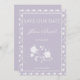 Personalisieren Sie eine einmalige Hochzeitsankündigung mit einer Lavendel Rose Save the Date. Das Design der Ankündigung umfasst weiße Rosen und passenden gekachelten Hintergrund und Text, den Sie mit Ihren Hochzeitstermin-Details personalisieren können. Zusätzliche Ankündigung Datum freihalten für dieses Design in verschiedenen Farben verfügbar.