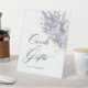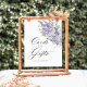 Dieses elegante Hochzeitsschild "Cards and Gifts" zeigt zarte Lavendel-Wasserfarben-Blumen, die mit subtiler Salbeigrün-Pflanzenwelt kombiniert sind, und schafft einen raffinierten und romantischen Akzent für Ihren Gabentisch.