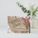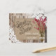 Stallholz und Rotwein Lavendel Bouquet in Maurerkirsche mit Burlap und Spitze mit Zwirn und weiße Spitze über Leinen-Look rustikale Land Save the Date Postkarte.