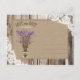 Stallholzplanken und Lavendel in Maurerkirsche mit Eintopf und Spitzen, die mit Zwirn und weiße Spitzen über Leinen-Look rustikales Land Save the Date Postkarte.