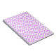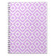 Spiral Notebook ist mit einem dekorativen Lavendel und weißen geometrischen Muster ausgestattet. Lavendel-Diamanten mit weißen Rändern sind von lila, hellen Mäandern umgeben, die um sie kreisen. Weiße Zickzack trennen die gewundenen blassen lila Pfade und die Offsetdiamanten.