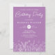Lavender Wildblumen Geburtstagsfeier Einladungen mit Blume in einem modernen Line-Design. Passen Sie Namen, Daten und Informationen an.