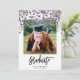 Ein schöner Blumen Lavendel und Grün betonten Abschluss-Fotokarte, mit Rückseite Co-ordinating, um Ihre Partysonderkommandos zu addieren. Einfach, den verfügbaren Text stellt zu redigieren oder zu löschen auf, um die Informationen mit Ihren eigenen Details zu personifizieren und fügt ein spezielles Foto für ein berufliches und kundenspezifisches Ende hinzu. Lose zusammenpassende Einzelteile in dieser Lavendelblumensammlung. Besichtigen Sie bitte mein Geschäft, um die vollständige Auswahl zu sehen. Einladungen, Aufkleber und andere Produkte auch verfügbar.