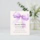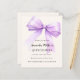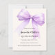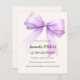 Ein beige, cremefarbener Hintergrund, mit einem großen Lavendel, violett und lila Bogen dekoriert. Personalisieren und fügen Sie einen Namen und Party-Details hinzu. 1 Blatt = 1 Einladung mit Druckkante bis Kante.