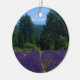 Ein schöner Sommertag im Juli 2016 auf einem Lavendelhof in Hillsboro, Oregon. An einem sehr klaren Tag kann man den Berg Hood zwischen den Bäumen sehen, aber an diesem Tag hatten einige Wolken den Blick blockiert. Die Reihen der Lavendel waren hell und roch phantastisch!