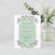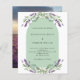 Weiß und schlauer grüner Hintergrund mit lila Lavendel-Blume, Eukalyptusgrün und Bogenrahmen. Personalisieren und Ihre Namen und Details. Zurück: Personalisieren Sie Ihr Foto und fügen Sie es hinzu. 1 Blatt = 1 Einladung mit Druckkante bis Kante.