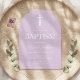 A soft lavender baptism arch design that brings a gentle and elegant feel to your celebration. The pastel purple tone combined with a minimalist layout creates a beautiful and meaningful presentation. Perfect for baby girls, this design is fully customizable and works wonderfully for baptisms, christenings, and baby dedication events.