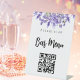 Weißer Hintergrund, schwarzer Text. Die Blume sind mit Aquarelllavendern dekoriert. Personalisieren Sie Ihren eigenen QR-Code und fügen Sie ihn mit dem Menü Bar zu Ihrer Website hinzu.